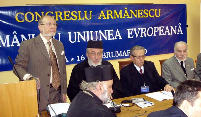 ILARION TIU: Pe 19 noimebrie s-au încheiat la Tirana (Albania) lucrările Congresului Internaţional al Aromânilor, început marţi, 17 noiembrie. Participanţii la eveniment, care reprezentau asociaţii ale aromânilor din România, Albania, Macedonia şi Serbia au adoptat o rezoluţie, prin care se arată îngrijotaţi faţă de dezinteresul statelor de origine a aromânilor faţă de drepturile culturale şi etnice ale acestei comunităţi. De asemena, participanţii au combătut proliferarea la scară internaţională a unor entităţi „neo-aromâniste“, despre care susţin că au falsă legitimitate, cum ar fi: Fara Armânească (România), Uniunea Vlahilor din Albania, Asociaţia Vlahilor din Albania etc. Conducătorii acestor organizaţii sunt acuzaţi că promovează artificial drepturile aromânilor (pe care-i descriu ca un popor diferit decât cel român), fiind interesaţi de fapt să obţină unele beneficii materiale personale.