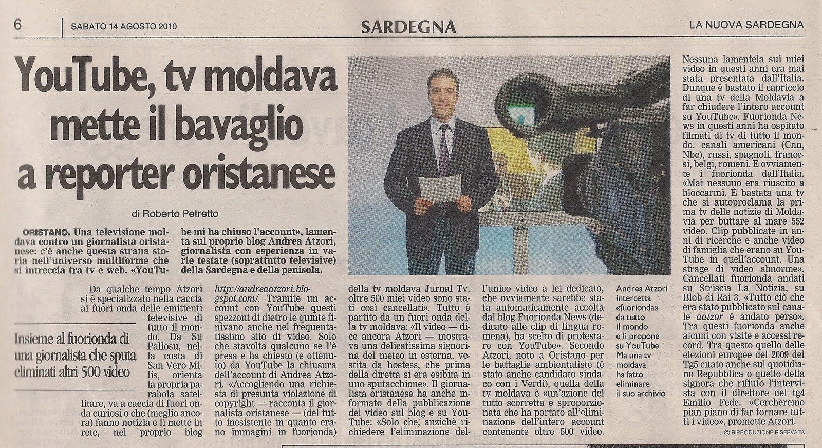 Iata si relatarea lui Andrea Atzori de pe blogul sau aparuta si intr-unul dintre articolele din presa italiana, care contribuie la aceasta reclama generoasa, ca urmare a gestului JurnalTV.md: